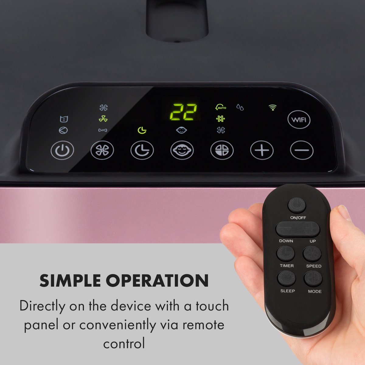 Gebruiksvriendelijkheid staat centraal. Bedien de Kraftwerk 12K handmatig via het intuïtieve touchpaneel of via de meegeleverde afstandsbediening. Voor extra gemak kun je de airco volledig bedienen via de Klarstein app, die compatibel is met iOS, Android, Amazon Alexa en Google Home. Plannen maken? Dat kan dankzij de ingebouwde 24-uurs timer, zodat je altijd wakker wordt in een verkoelde kamer.